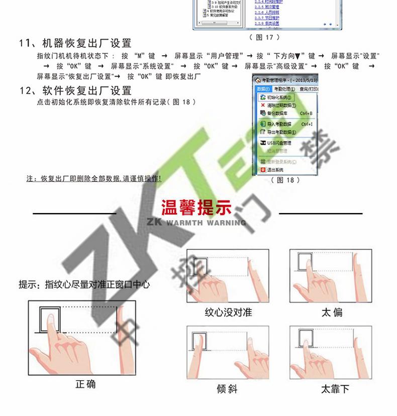 · 平臺(tái) : Intel32位處理器,2007版ZKFinger V8.0版指紋算法,ZEM500主板