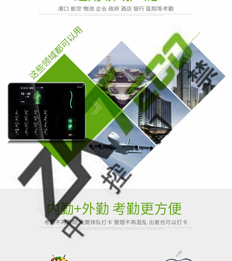 中控w6考勤機(jī) 超薄彩屏打卡機(jī)