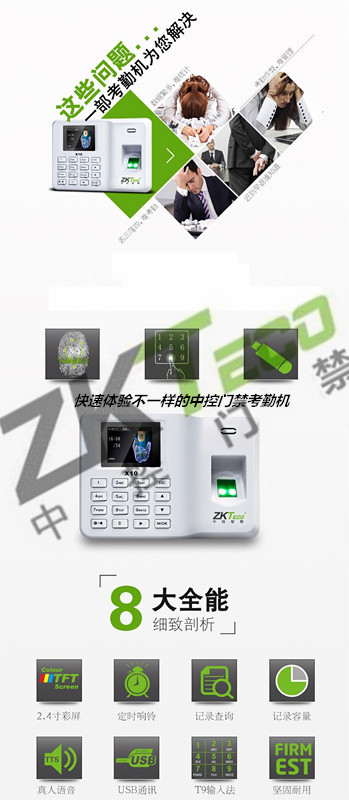 中控X10考勤門禁 自主彩屏打卡機(jī)