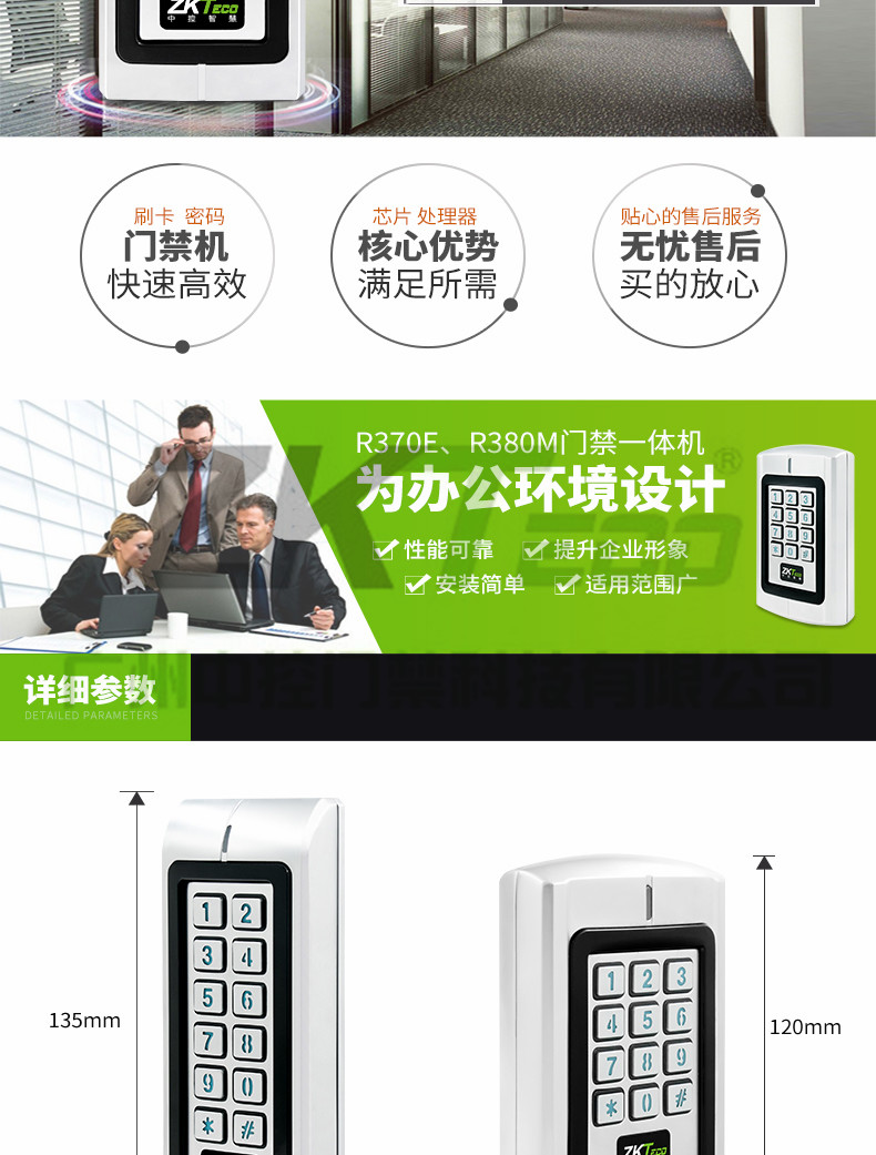 金屬刷卡門禁一體機(jī)R370/R380支持支持常規(guī)非接觸式ID卡、IC卡,二代證以及HID iclasss卡等,是目前比較先進(jìn)的單門門禁控制器之一。采用獨(dú)特的金屬外殼設(shè)計(jì),靈巧的鍵盤面板操作,內(nèi)置高檔微處理器,抗干擾能力強(qiáng),安全性和可靠性極高,可為1000個(gè)用戶提供強(qiáng)大的安全保障。具有超低功耗、夜光鍵盤、獨(dú)立密碼、韋根輸出、輸出短路保護(hù)、門磁報(bào)警、防拆報(bào)警、開門按鈕、門鈴接口、安全級(jí)別設(shè)置等強(qiáng)大功能,使用非常方便,可廣泛應(yīng)用于家庭、辦公室、住宅等。