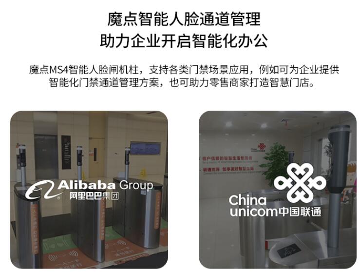 魔點(diǎn)MS4智能人臉閘機(jī)柱,支持各類(lèi)門(mén)禁場(chǎng)景應(yīng)用,例如可為企業(yè)提供智能化門(mén)禁通道管理方案,也可助力零售商家打造智慧門(mén)店。